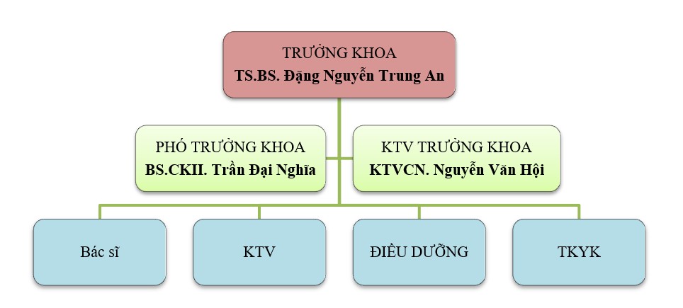 Khoa CĐHA từ khi bệnh viện thành lập ngày 01/7/2012, thời điểm thành lập có 10 nhân sự với 01 máy CTSCAN(02 lát cắt), 01 XQuang, 02 siêu âm, 01 điện tim.